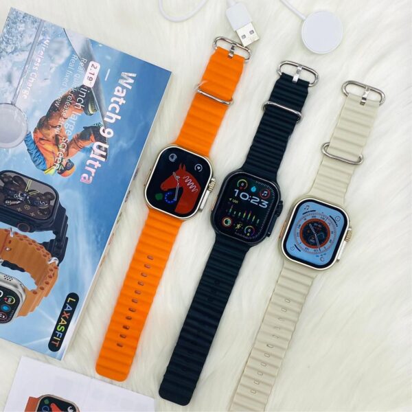 The Watch 9 Ultra Smartwatch boasts a sleek and stylish design that seamlessly fuses form and function. The attention to detail is evident in its premium build quality, with a durable yet lightweight construction that ensures comfort during extended wear. The vibrant, high-resolution display enhances the overall user experience, providing crisp visuals and vivid colors.The device’s intuitive touchscreen interface facilitates easy navigation, allowing users to access a myriad of functions with just a swipe or tap. Whether you’re checking notifications, tracking fitness metrics, or customizing watch faces, the Watch 9 Ultra Smartwatch ensures a user-friendly and visually pleasing interaction.